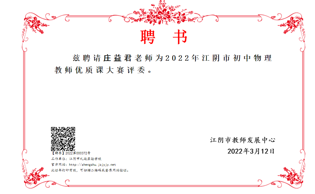 庄益君名师工作室领衔人庄益君老师担任江阴市优质课评委