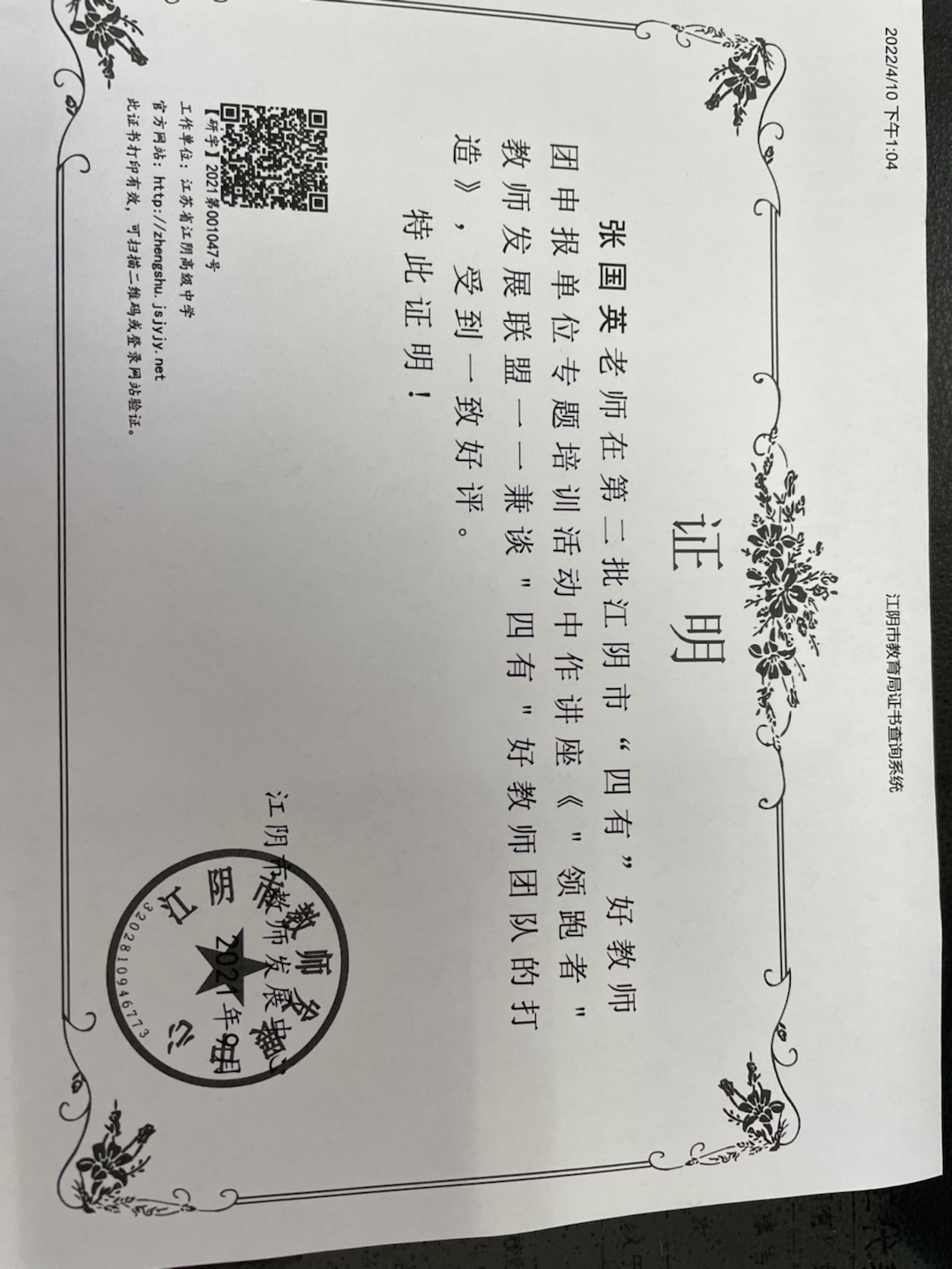 张国英老师在第二批江阴市四有好教师培训中作专题讲座《领跑者教师发展联盟——兼谈四有好教师团队打造