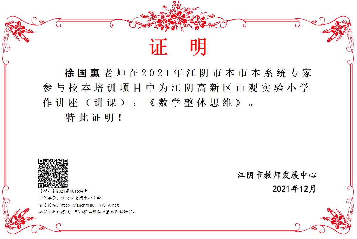 包静娟工作室成员徐国惠在江阴市作讲座《数学整体思维》
