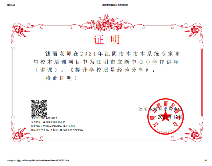 包静娟工作室成员钱丽在江阴市作讲座《提升学校教学质量经验分享》