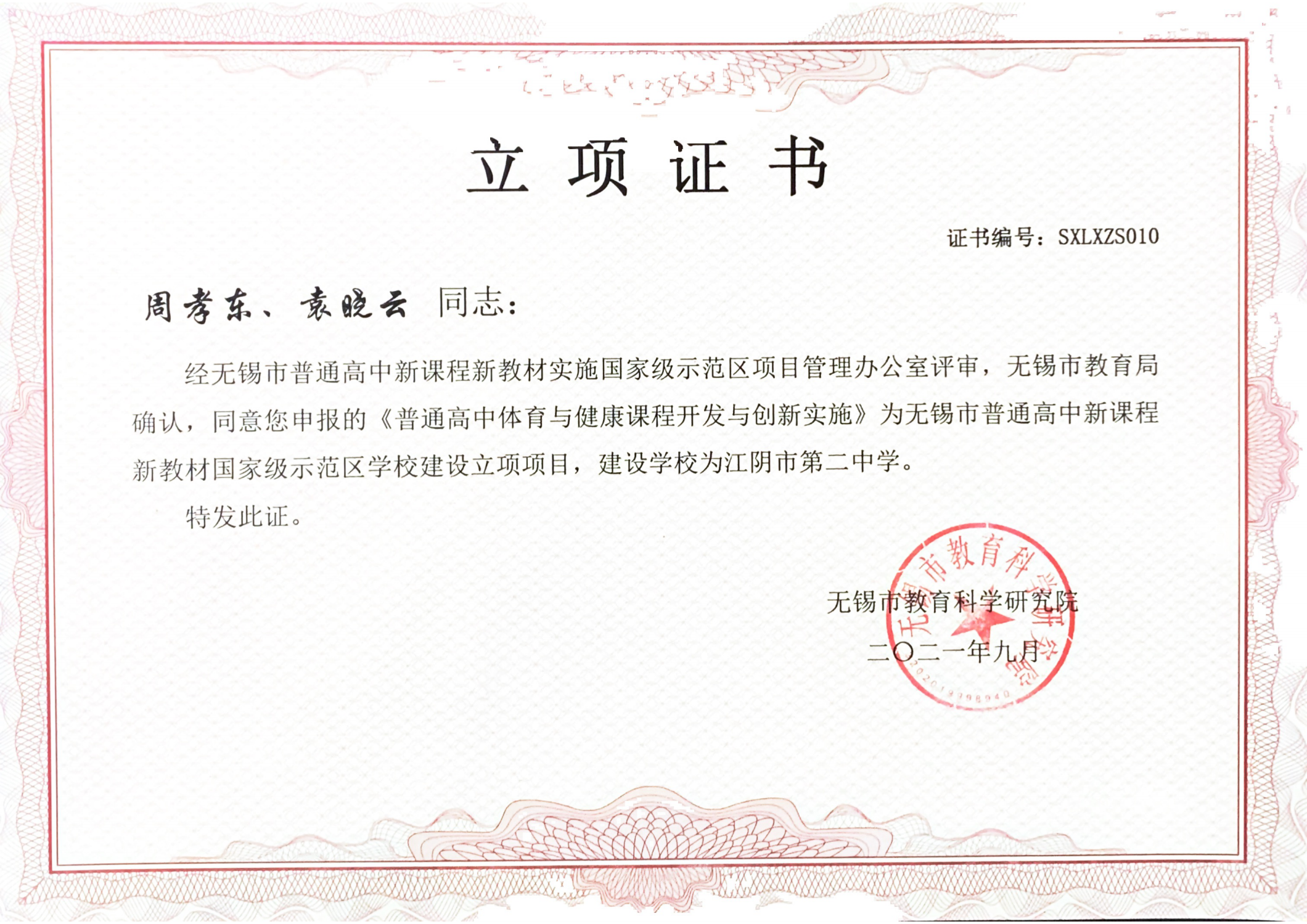 袁晓云: 无锡市高中新课程新教材国家级示范区学校建设项目《普通高中体育与健康课程开发与创新实施》立项