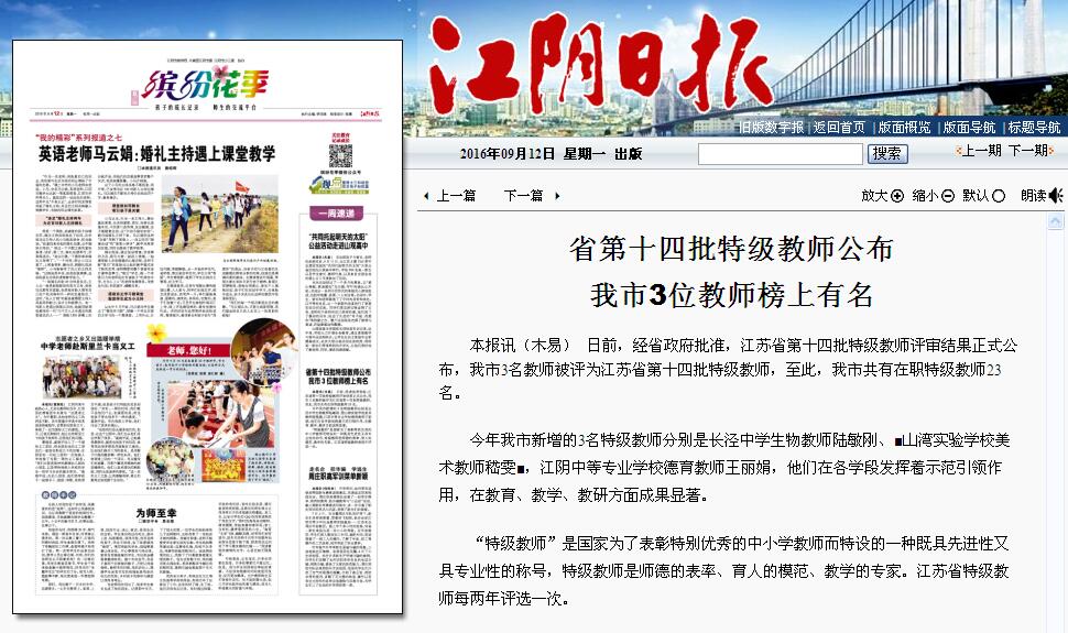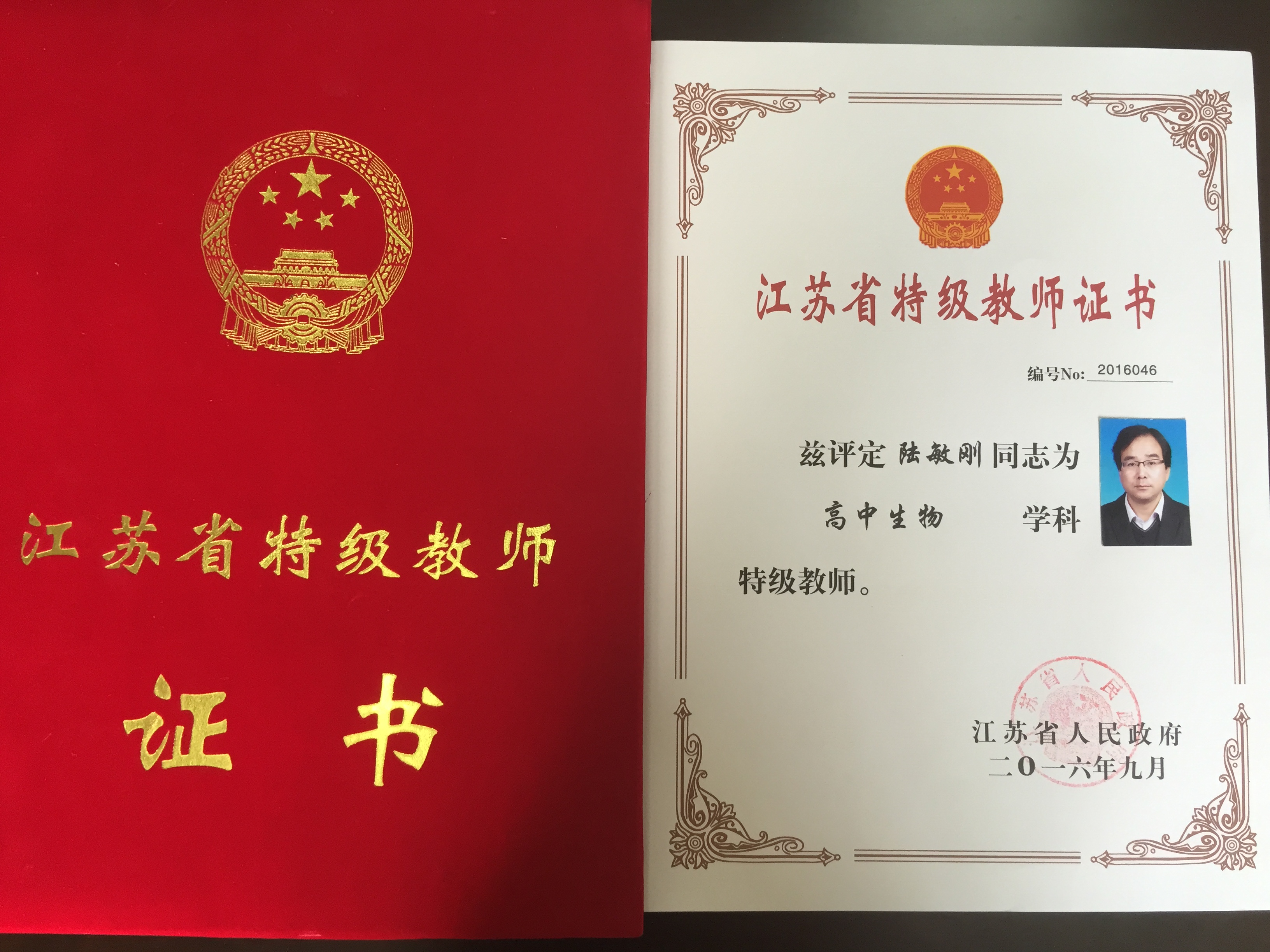 工作室主持人陆敏刚老师被评为江苏省特级教师