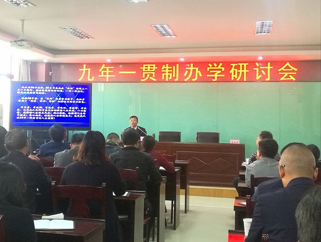 会议开始由汤国忠副局长主持,在其他与会嘉宾讲话结束后,贡和法老师以36年的执教及管理经验,着重对九年一贯制办学现实情况以及未来发展规划进行了专题指导。