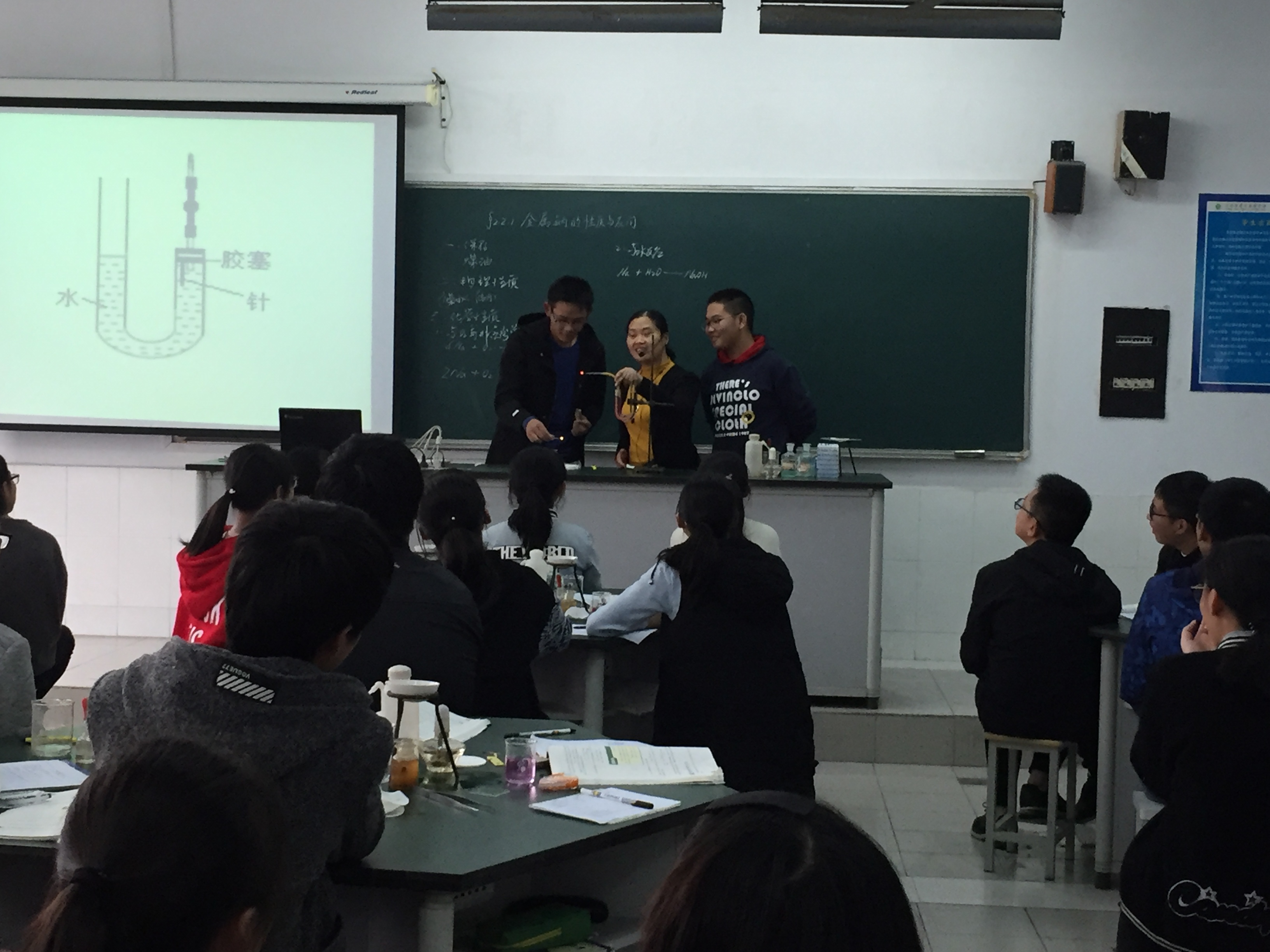 活动首先观摩了由成化高级中学化学学科教研组长陈海萍老师执教的《金属钠的性质和应用》。课堂中,依据多年的高中教学经验和高一学生的特点,陈老师充分发挥学生的主体性,以知识为载体展开研究,并创新实验仪器,高效达成课堂教学目标, 将课堂的动力、活力和师生的能力巧妙融合,而且凸显了“实验探究与创新意识”、“证据推理与模型认知”等高中化学学科核心素养的特点,是一堂“有趣”、“有质”和“有效”的课堂。