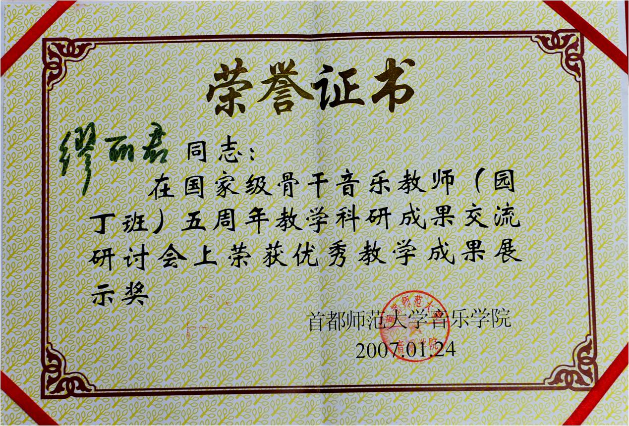 2000至2001年缪丽君导师由江苏省师训处选拔参加教育部举办的全国中小学骨干教师国家级培训。