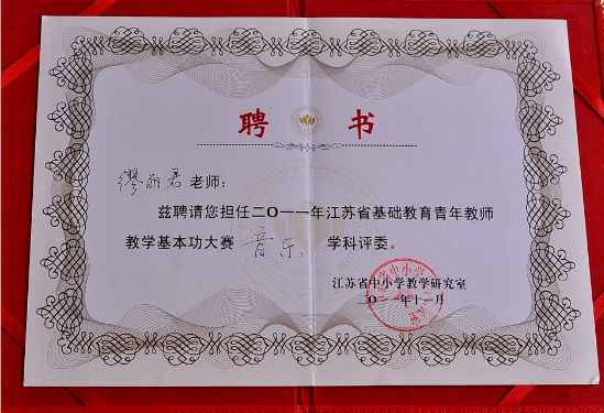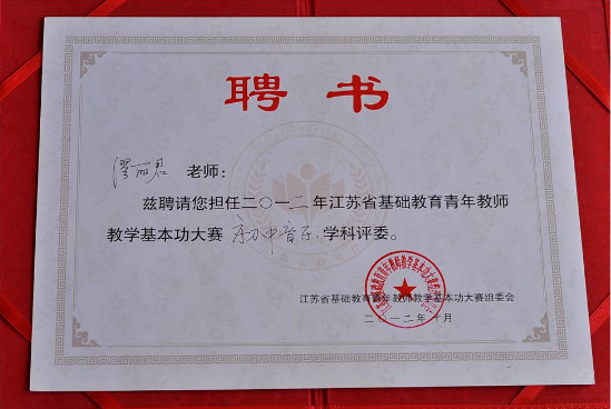 2011、2012年缪丽君导师担任江苏省基础教育青年教师教学基本功大赛评委