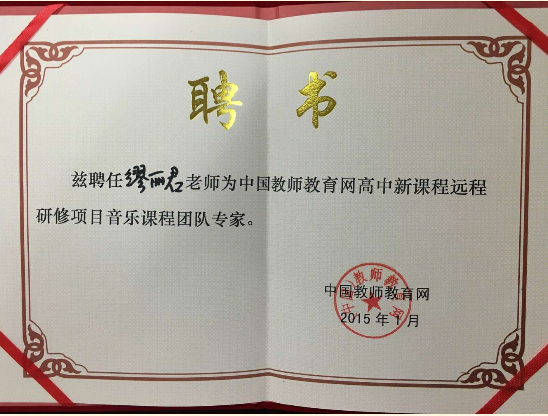2015年缪丽君老师担任中国教师教育网高中新课程远程远程研究项目音乐课程团队专家