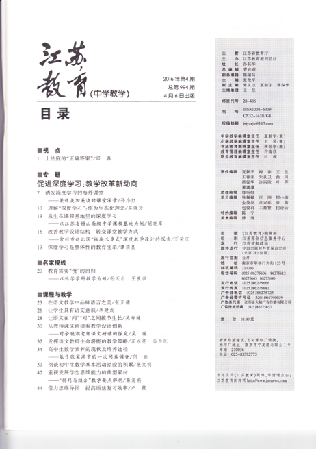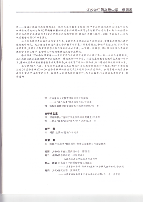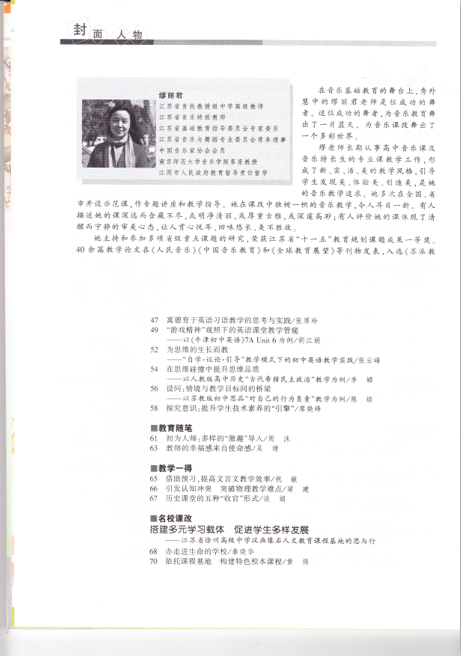 《江苏教育》2016年第4期封面人物——缪丽君导师