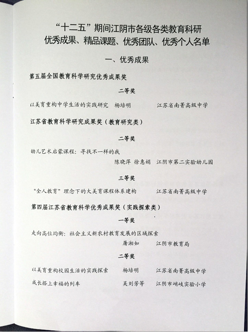 《乐海乐渡》获江苏省第四届教育科学优秀成果实践探索三等奖