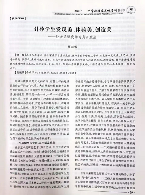 缪丽君导师论文《让音乐深度学校真正发生》被人大书报资料中心全文转载