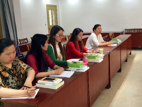 学员们首先进行了工作交流,分享了在教育教学、教科研、辅导学生、比赛获奖等方面取得的成绩。在交流的过程中,缪丽君导师结合她先进的教学理念和开阔的教育视野,针对学员的不同情况因势利导,有教学素养方面的,也有个人成长方面的,进一步明确每个学员专业发展的方向。