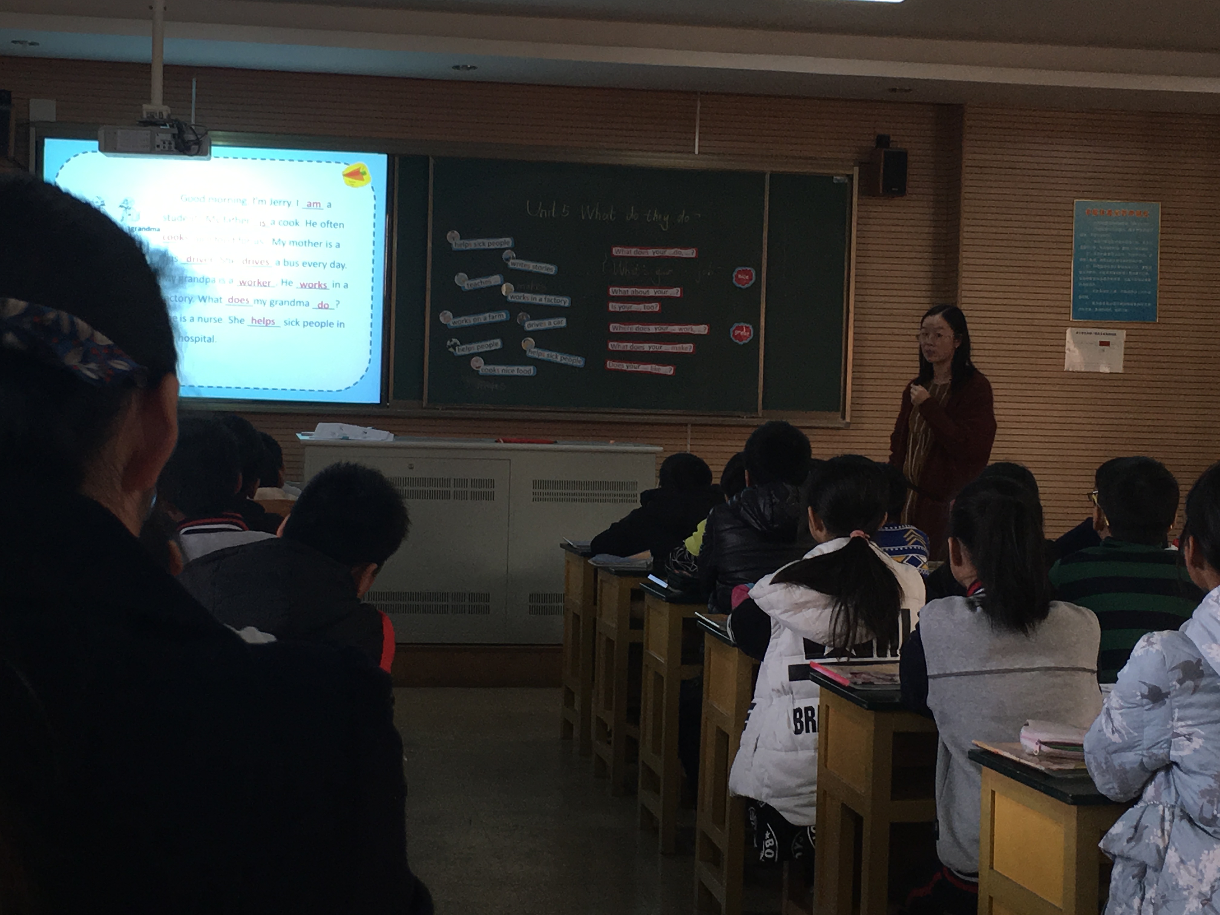 下午,江阴市教师发展中心的潘开英老师和来自其名师工作室的蔡铭老师给老师们执教了《Unit5 What do they do?》的第一和第二课时,生动而高效,诠释了潘老师一贯的教学理念“少教多学”。最后,潘老师结合课堂实践作专题讲座——《课堂“教”与“学”的设计与思考》。与会老师表示,此次活动使大家迫切地思考如何改革课堂,如何更好地把课堂真正还给学生,收获颇丰。