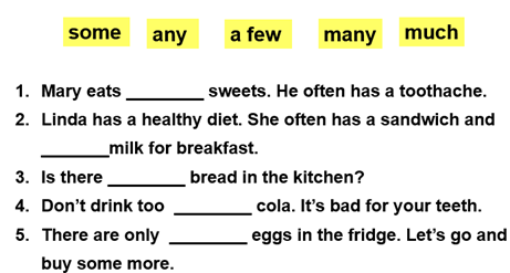3. 能灵活运用a little, a few, much, many, a lot of, some来表述他人和自己的饮食习惯。