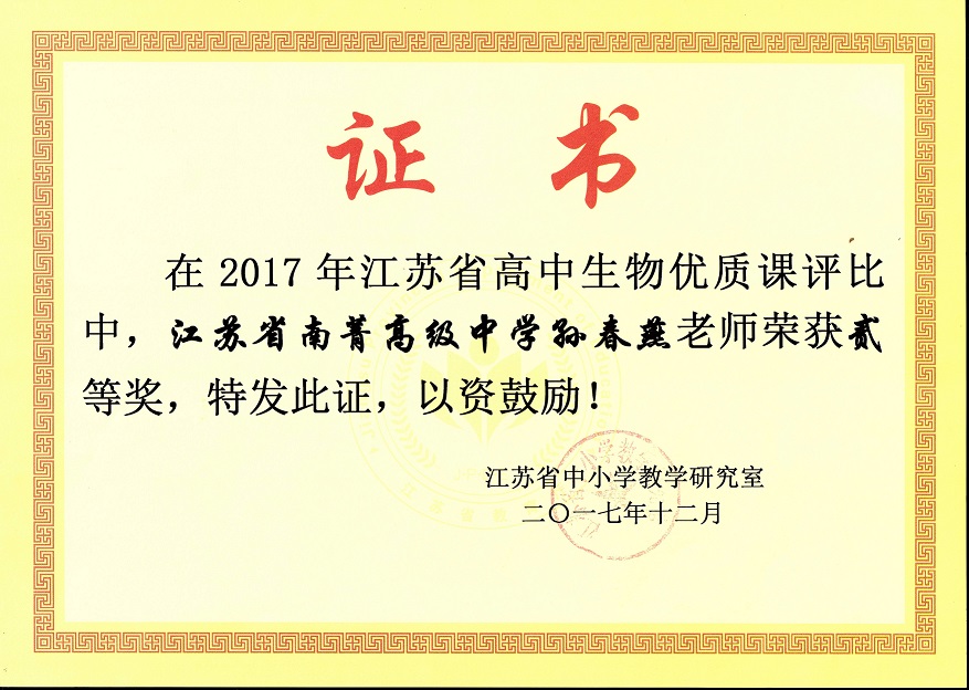孙春燕老师获江苏省优质课贰等奖