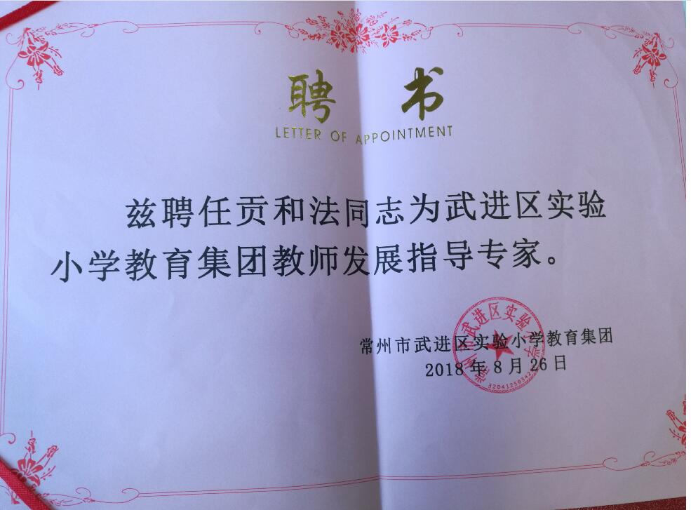 贡和法老师受聘担任武进区实验小学教育集团教师发展指导专家 卢 钰