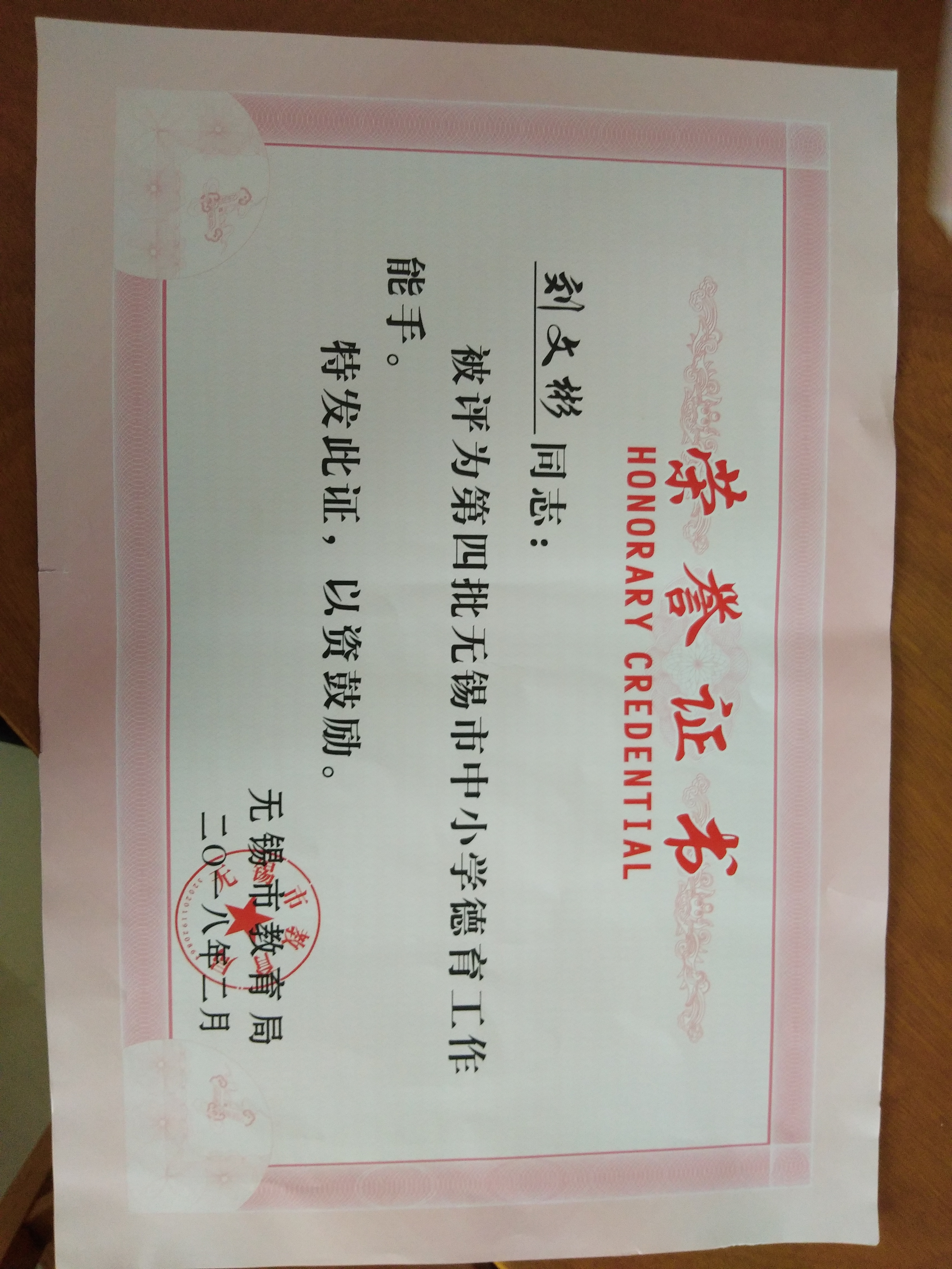 贡和法工作室成员刘文彬获评无锡市德育能手