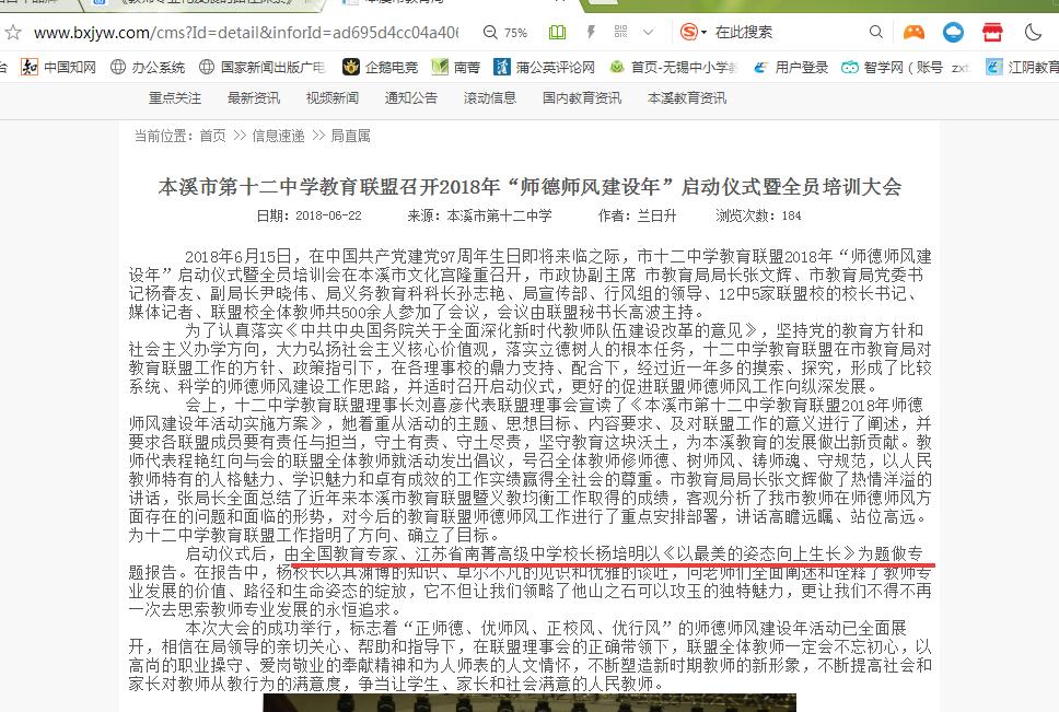 杨培明校长 于本溪市“2018年师德师风建设年”上作报告《以最美的姿态向上生长》