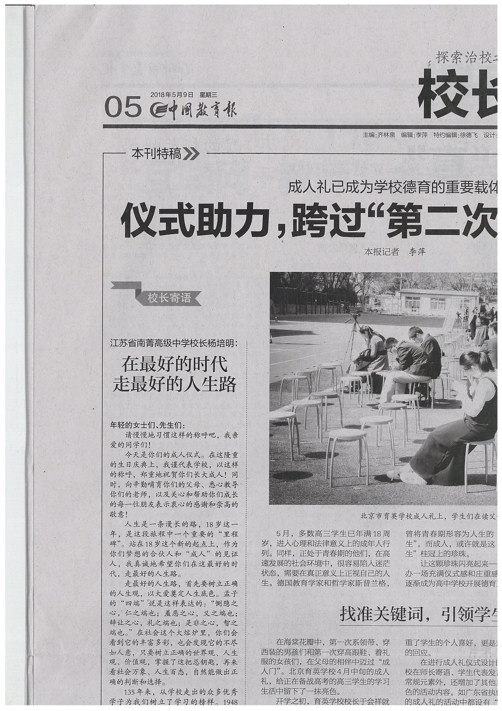 2018.5《中国教育报》在最好的时代走最好的人生路