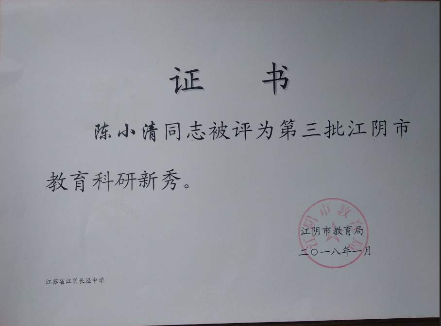 陈小清:江阴市教科研新秀