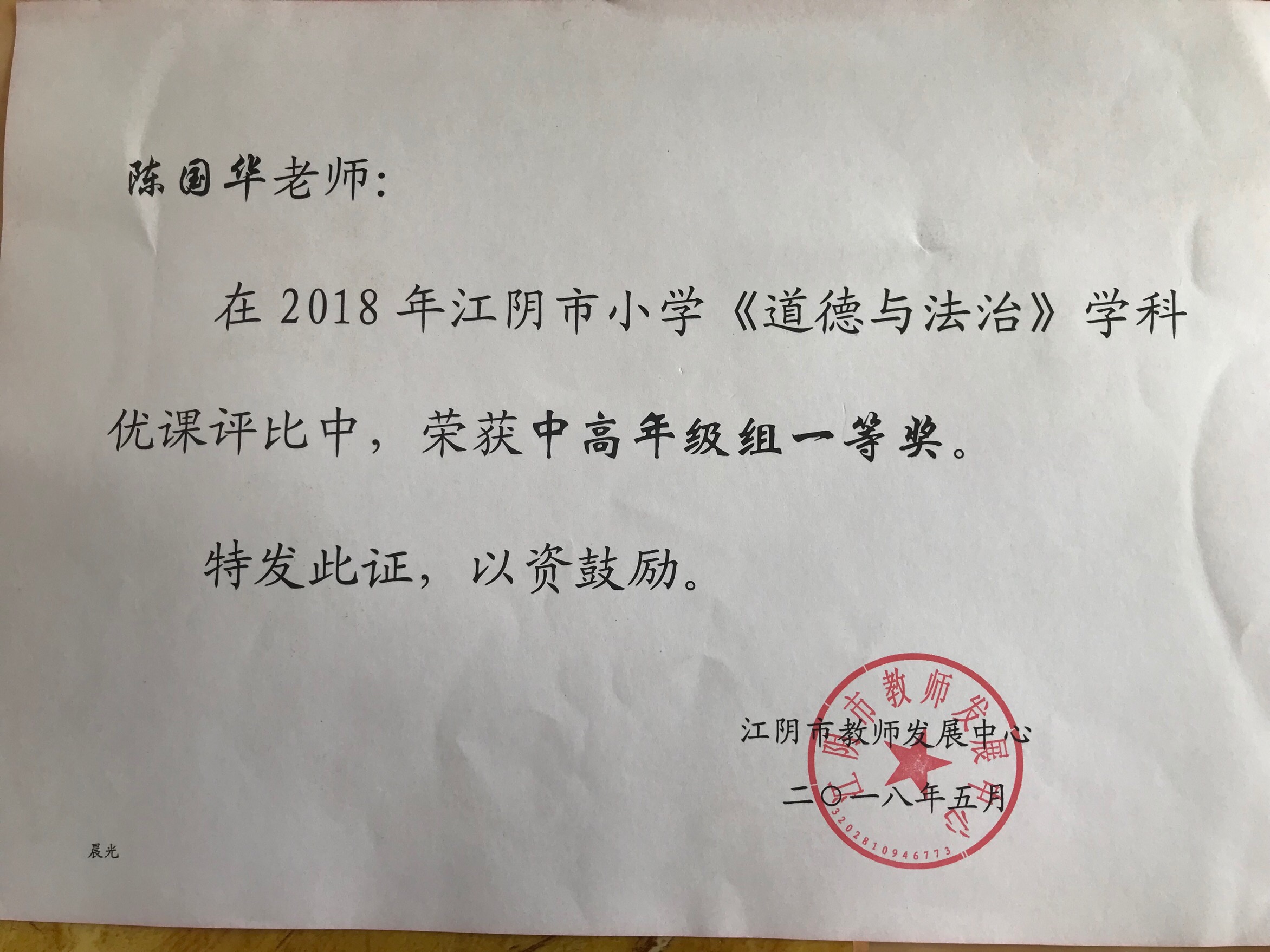 江阴市《道德与法治》学科优课评比一等奖