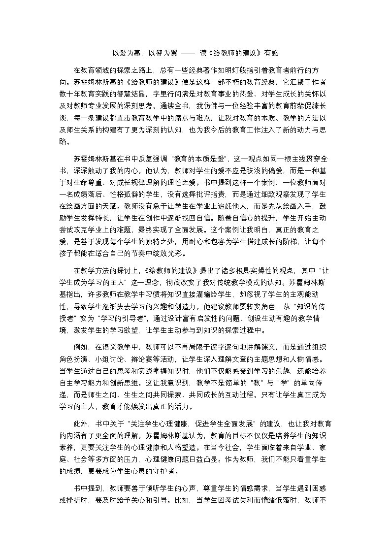 读书心得(或读书笔记):读《给教师的建议》心得(孟秋竹)