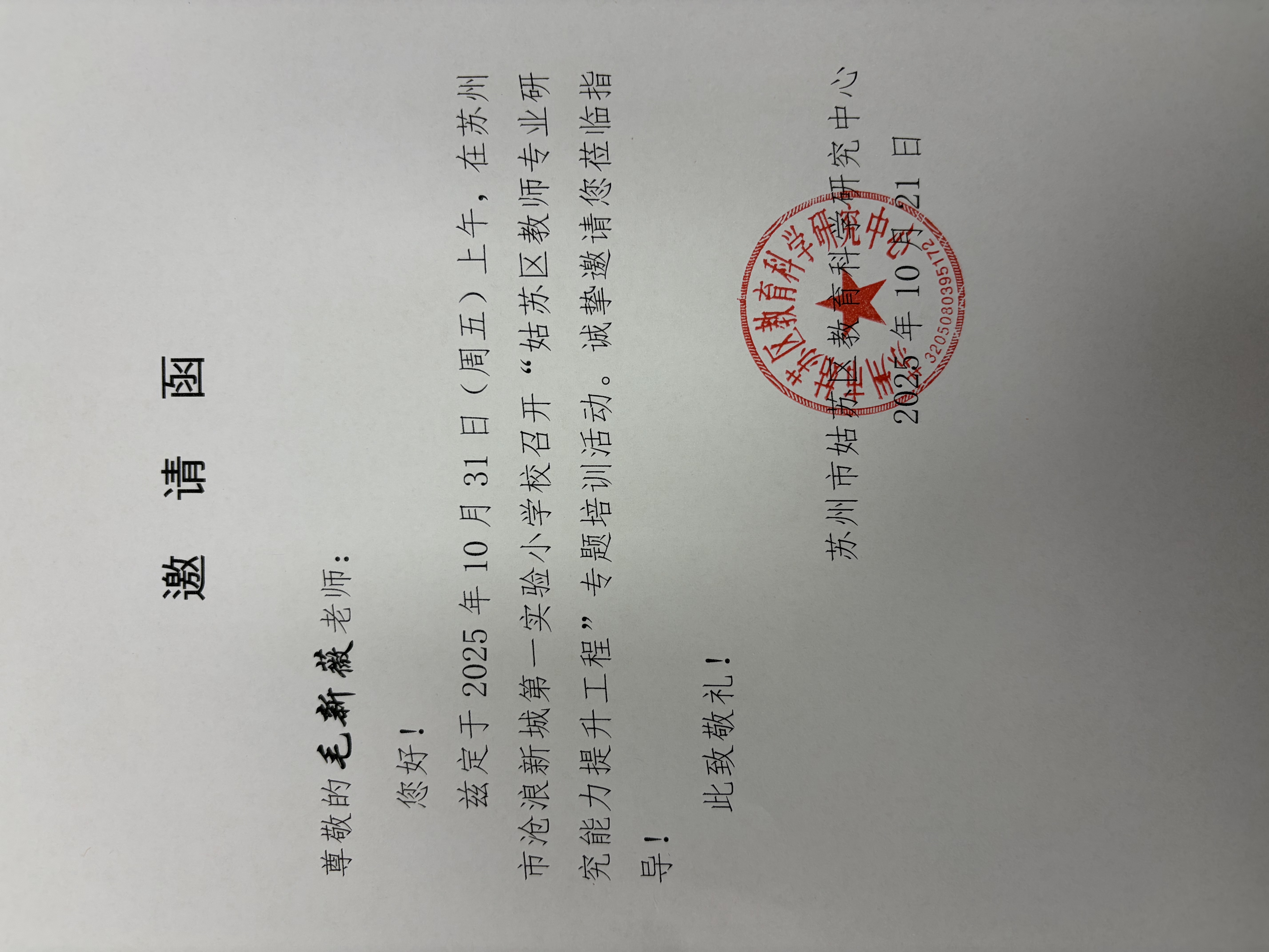 毛新薇受邀赴苏州沧浪新城第一小学作教科研专题指导