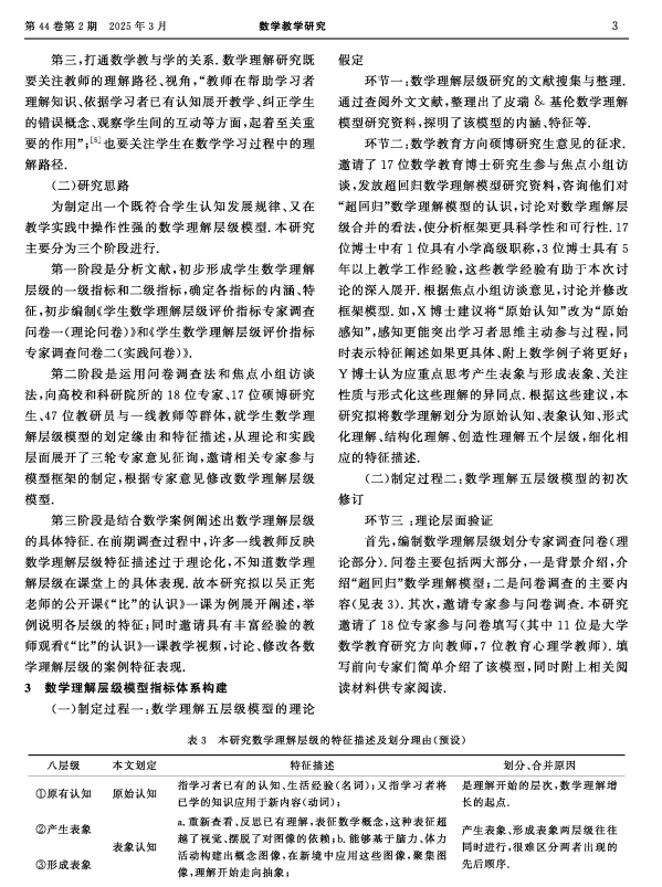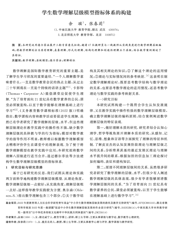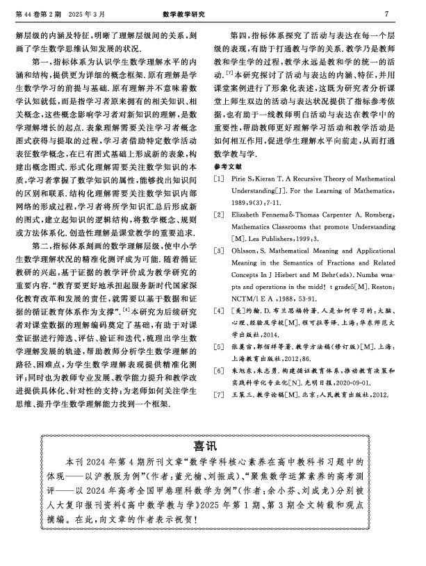 文章推荐《学生数学理解层级模型指标体系的构建》(余瑶发表于《数学教学研究》202503)