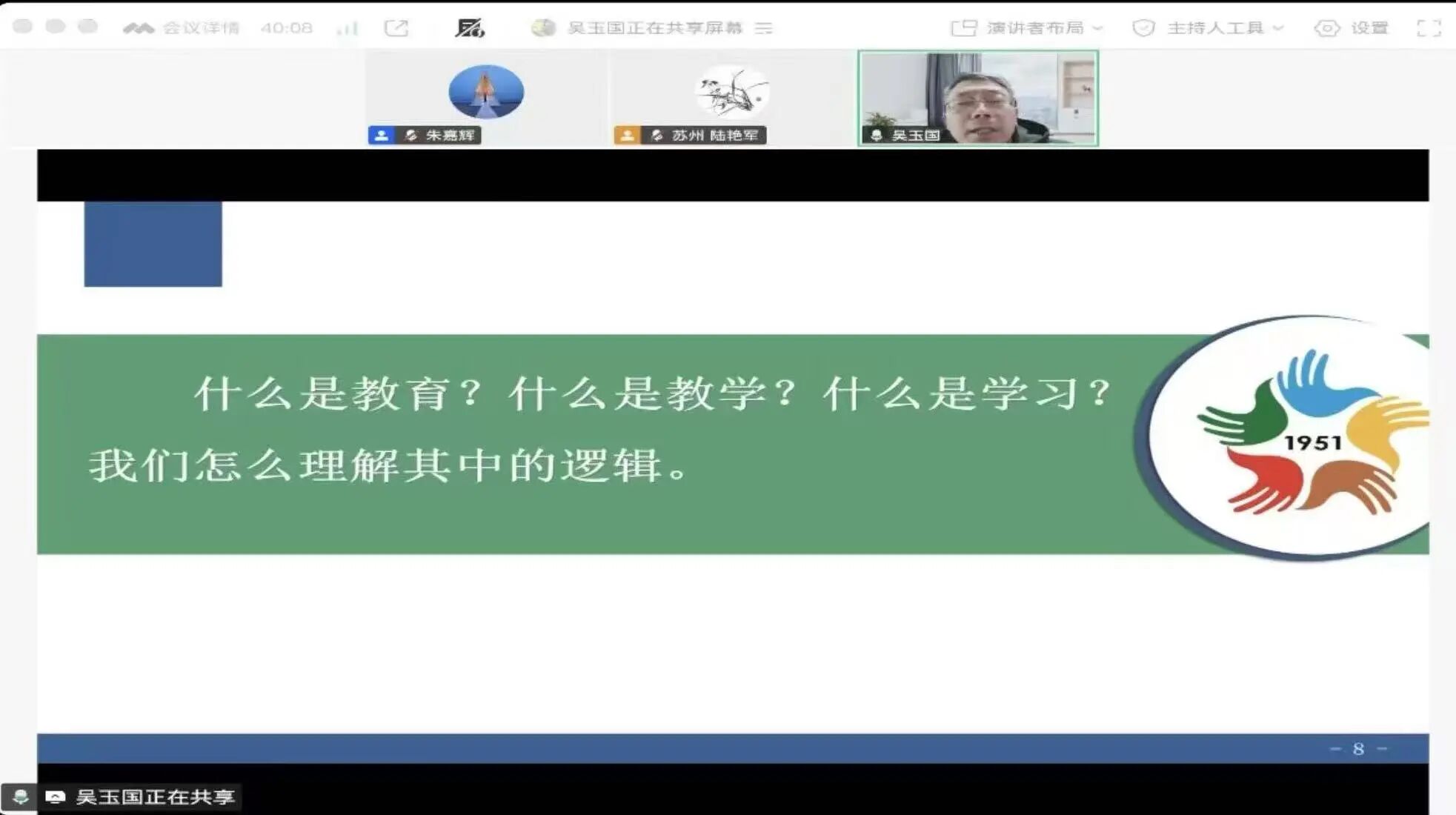 11月12日下午,南京市五老村小学教育集团总校长、江苏省特级教师吴玉国校长,为学员们带来一场主题为《化知识为素养:小学数学结构化学习创新实践》的讲座。吴校长结合自身近40年的一线教育经验与团队长达二十余年的研究实践,从教育本质出发,提出“善良”与“向上”是教师成长的核心底色,强调教研应立足学生真实学情,以“结构化学习”为抓手,推动数学教学从知识传授走向素养培育。吴校长分享了结构化学习的核心理念——抓住本质、发展思维、引导发现,主张通过真实课堂、工具开发、学材创新和任务群设计实现素养导向的教学,并以“两位数除以整十数”的课例展示结构化备课思路,强调备课要关注学生真实表现、促进知识转化为行动,构建有思维、有工具、有过程的学习生态。整个讲座融合理论思考与一线实践,展现了小学数学教学从经验走向科学、从知识走向素养的深度探索。