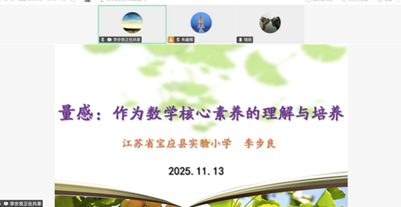 11月13日下午,江苏省特级教师、宝应县实验小学党总支李步良书记带来主题为《量感:作为核心素养的理解与培养》的专题讲座。李书记指出当前儿童在量感表现上存在感知性偏差、经验性匮乏、方法性不适和评测性无力四大问题,表现为对长度、质量、时间、面积等单位的模糊认知与错误应用,根源在于生活经验不足、操作体验缺失、教学方法单一及评价方式滞后。他强调,量感的培养需回归课标,从“理解统一度量单位的必要性”“会度量能换算”“感知误差并合理估计”三个维度细化目标,并提出“注意—关联—信心—满足”的教学路径:通过精准的成就性目标激发学生注意力,设计问题情境链与任务驱动场,引导学生从感性体验走向理性认知与实际应用;借助知识关联、经验链接与结构表征,以类比、身体参与、数形结合、AR技术等多通道方式帮助学生具象化理解量的概念;通过直觉性与跳跃性思维,结合技术工具如无人机航拍、AR量尺等突破大数量级的认知壁垒,增强学生学习信心;最终以多维成果让学生获得成就感,形成“吸引—关联—信心—满足”的良性学习循环,系统推进量感这一核心素养的落地与深化。讲座既有理论高度,又有大量生动案例,为一线教师提供了理论指引与实践范例。