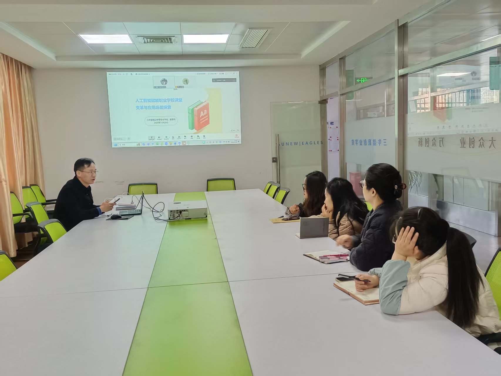 11月25日,工作室邀请知名专家,江苏省锡山中等专业学校督导科研处主任,正高级讲师,省教科研工作先进个人谢爱民老师给工作室全体成员作《人工智能赋能职业教育课堂教学》专题讲座。