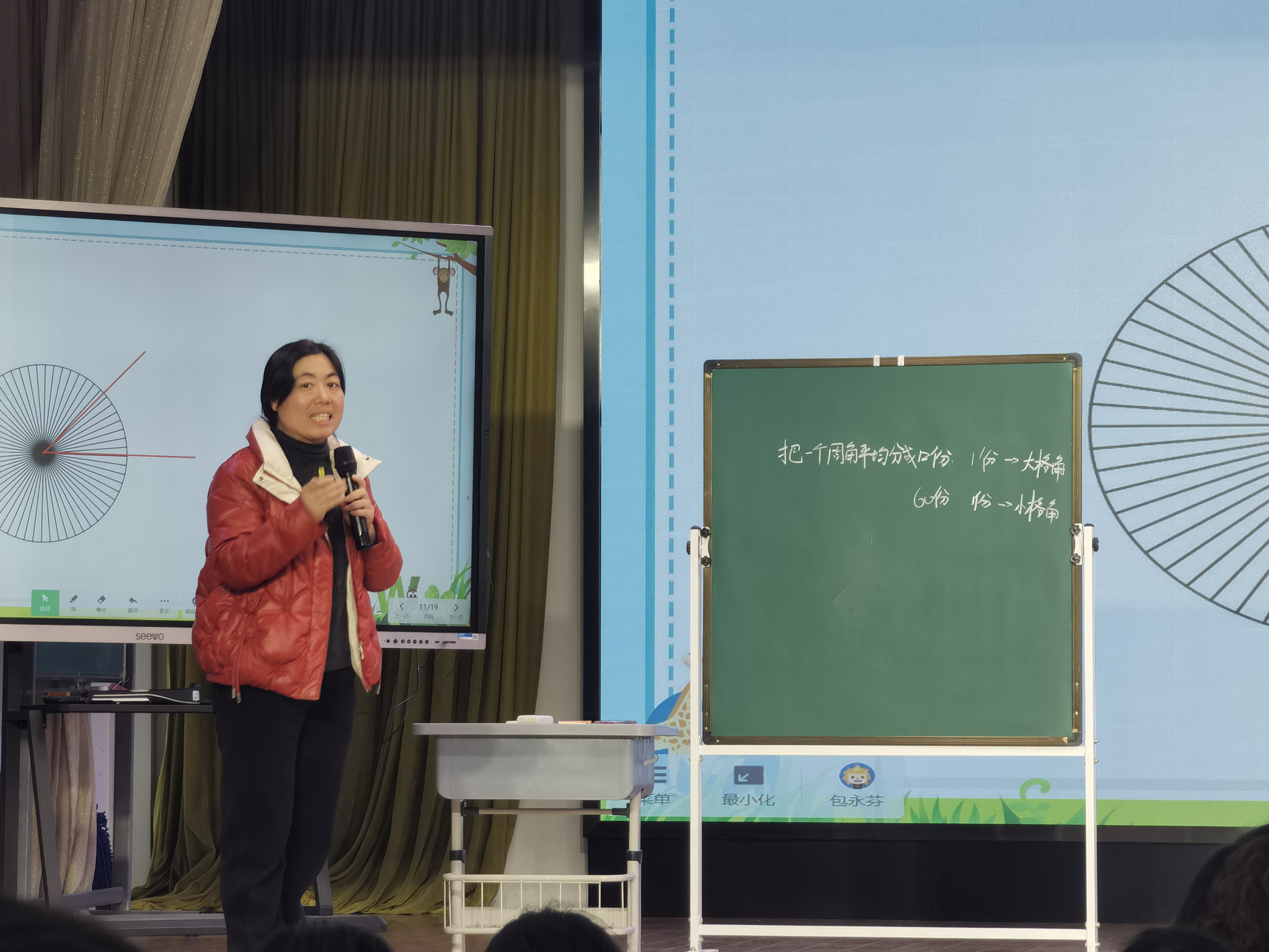 祝塘中心小学包永芬老师《认识 1 度角》:本节课从“大格角”“小格角”切入,借助AI动态演示1度角的生成过程——先通过动画拆解“周角被平均分成 360份”的核心原理,再对5°、6°、30°等不同角度进行叠加对比,帮助学生建立对“1 度角”的精准认知,有效破解“角的抽象性难以感知”的教学难点。