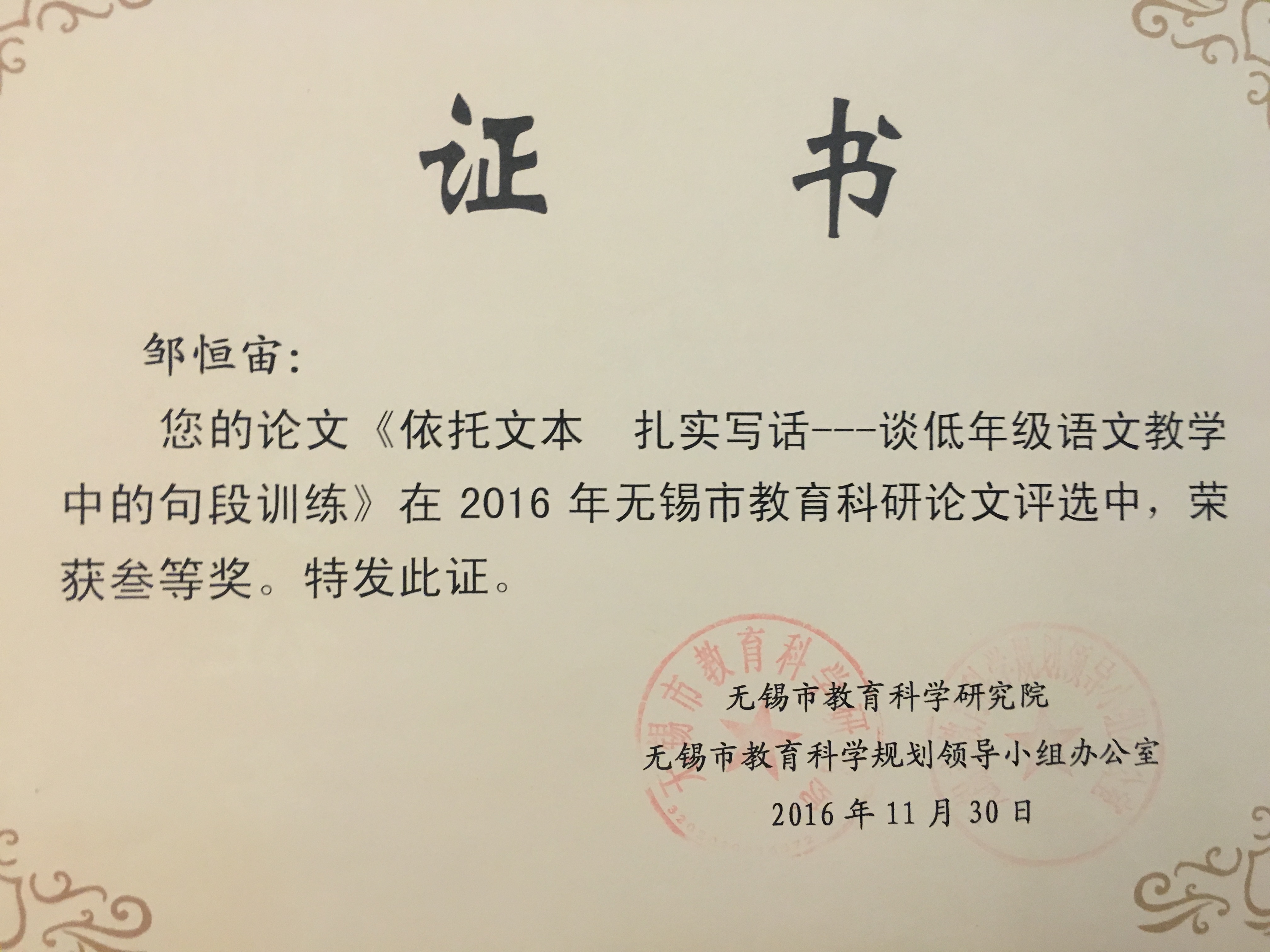 荣获江阴市“三力”课堂建设校本成果优秀展示奖