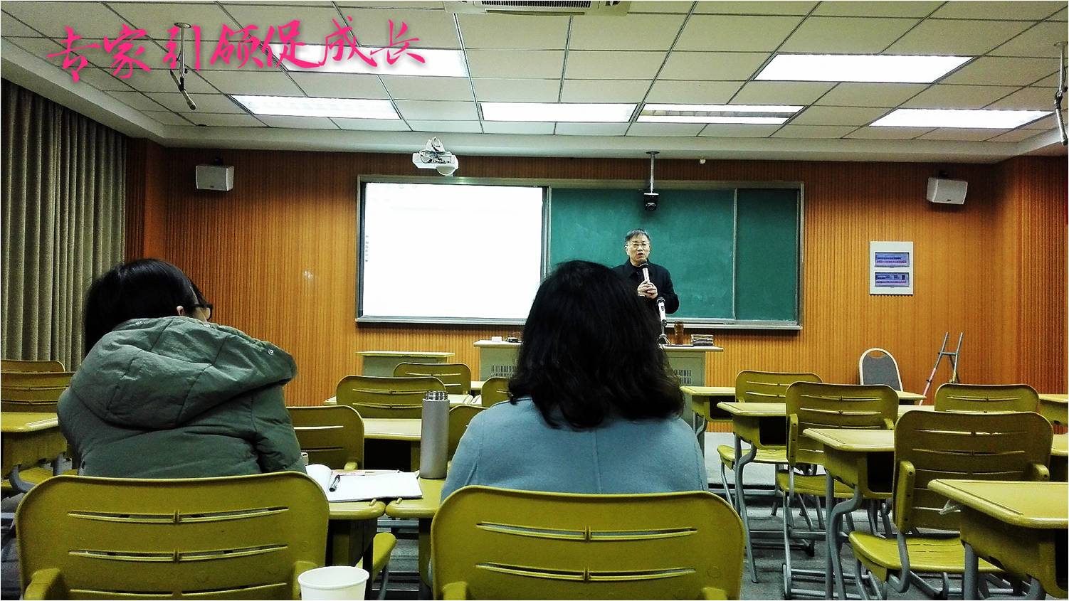 最后,无锡市贡和法名师工作室贡和法导师则以自己37年的教育实践感悟,既具有理论高度,也富有实践信度,对教师专业发展提出“一种品格、一种精神、一种境界”的教育人生的价值追求。作为教师,自我修炼要清晰“教育人生,追求事业的永恒价值”。一心坚持,选择好人生的立足点;诚信感激,把握好人生的平衡点;全心成长,创造出人生的制高点。教师专业发展是一个精准设计、问题寻解、超越自我的动态过程,教学无止境,教师发展是一个不断挖潜的过程。授人以鱼,不如授之以渔。贡和法老师授之以渔,强调自我修炼要学会“搅动内心,激活自我发展的正能量”,提出三个“搅动”——追求“意义”的崇高,有个“觉悟”的过程,拓展“实践”的领域。这三个“搅动”犹如教师专业成长的能量加油站,让教师变得更成熟、更完善、更优秀。最后,贡和法老师从职业道德、教学实践和教育科研三方面谈了如何“自我修炼,培育发展的专业品质”,给各位老师专业成长的方向进行了高位引领,更可贵的是贡和法老师结合从自身的教学、管理和科研经历出发,提出“实践+读书+反思+写作=成功”成长公式,让与会成员受益匪浅。