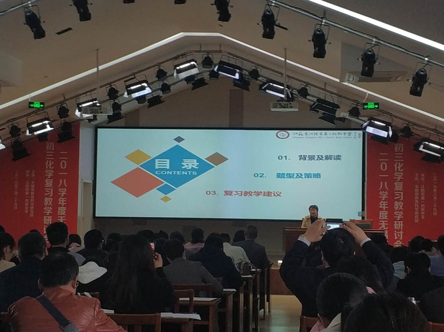 3月29日,无锡市137所学校的初三化学骨干教师和各区县发展中心化学教研员二百多人聚集在江阴市第一初级中学,围绕化学学科核心素养,如何有效提升初中化学的复习实效性,举行研讨活动。