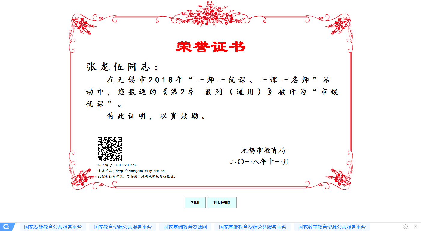 2018年“一师一优课、一课一名师”评比活动被评为“市级优课”