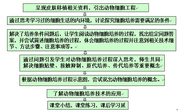 通过问题引发学生对动物细胞培养过程深入思考,师生共同 解决细胞贴壁、接触抑制、原代培养、传代培养等重要概念 |