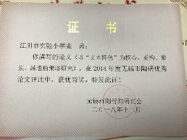 张茜老师撰写的教学论文获无锡市陶研杯优秀奖