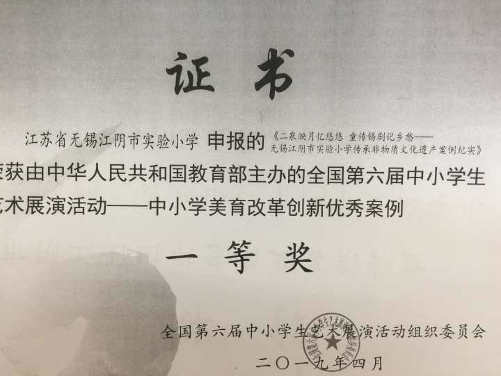 江阴市实验小学申报课程获中小学美育改革创新优秀案例一等奖