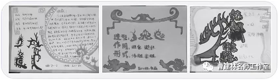 欣赏中,孩子们发现“火纹”和“水纹”在灰雕的图案造型中经常出现,作为商都路桥的孩子,他们很自然地就联想到先人们是为了寄托“生意红红火火、兴隆通四海”的美好心愿;而路桥地处海边,也有许多人是以打渔为生的,因此“水纹”也有“顺风顺水、风平浪静”的祈愿。这些原本是他们在生活中早已耳濡目染的,经过以上环节的学习,他们对灰雕艺术有了更深入的理解。