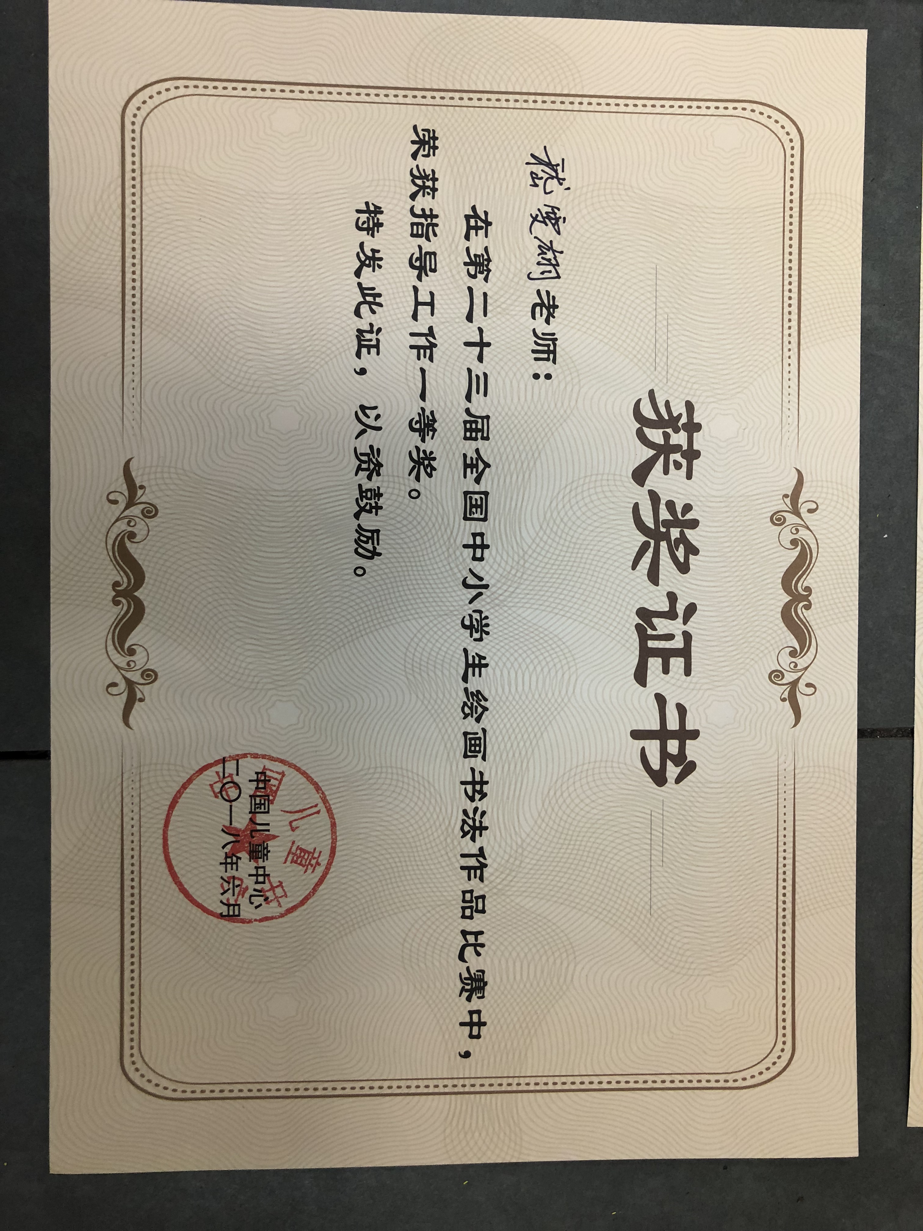 第二十三届全国中小学生绘画书法比赛——王梨梨优秀辅导奖