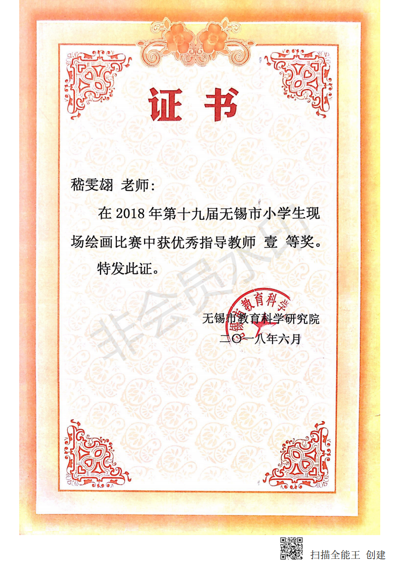 2018年第十九届无锡市小学生现场绘画比赛——优秀指导奖