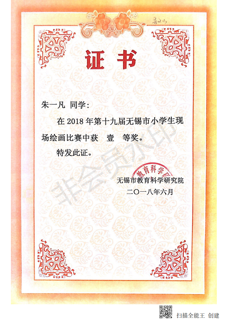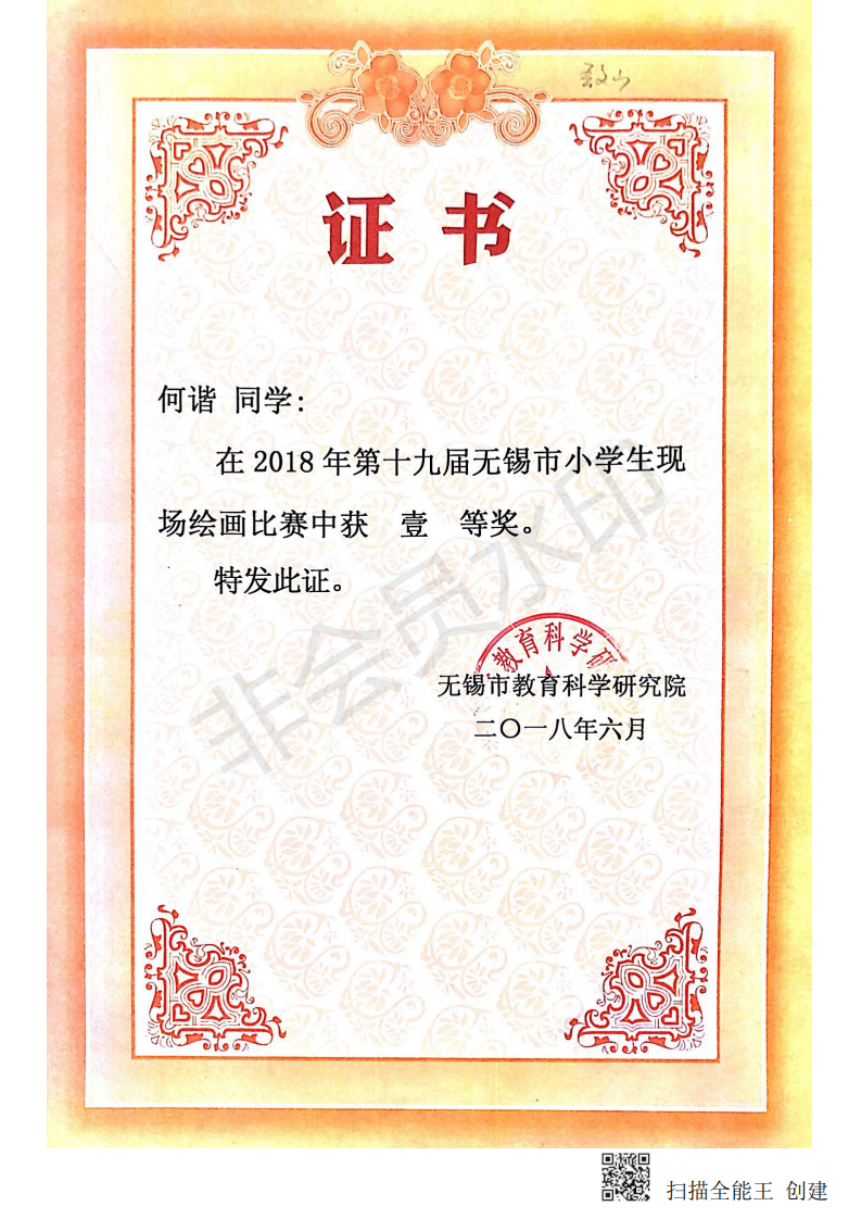 2018年第十九届无锡市小学生现场绘画比赛——学生奖项