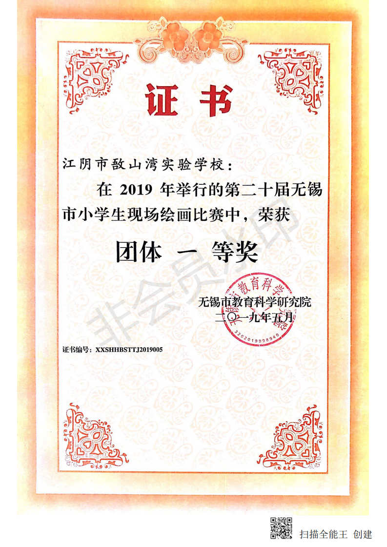2019年第二十届无锡市小学生现场绘画比赛——团体一等奖