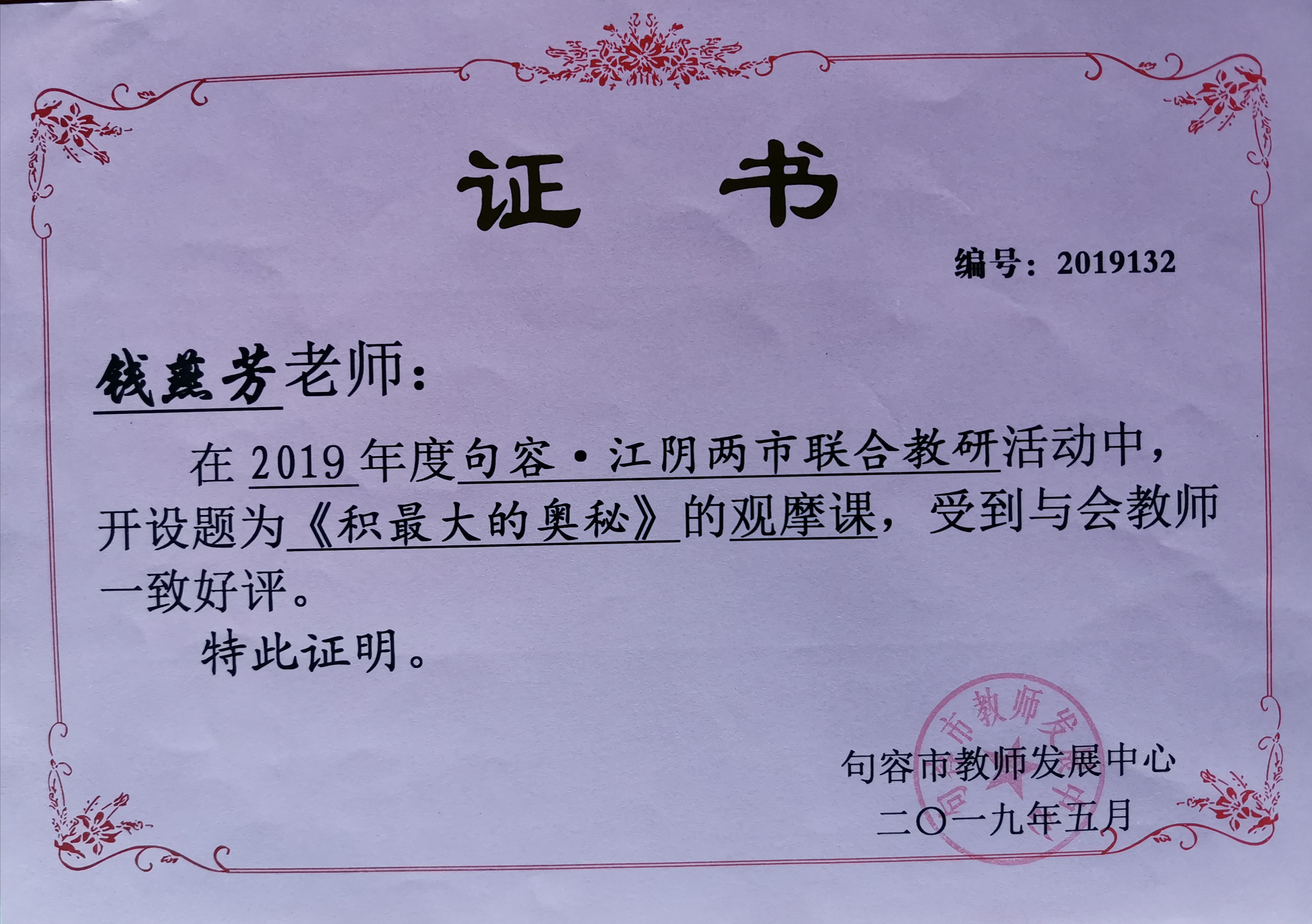 钱燕芳老师在2019年句容.江阴两市联合教研活动中上观摩课,获得一致好评!
