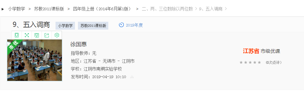 徐国惠老师的《五入调商》在“一师一优课”评比中被评为无锡市级优课