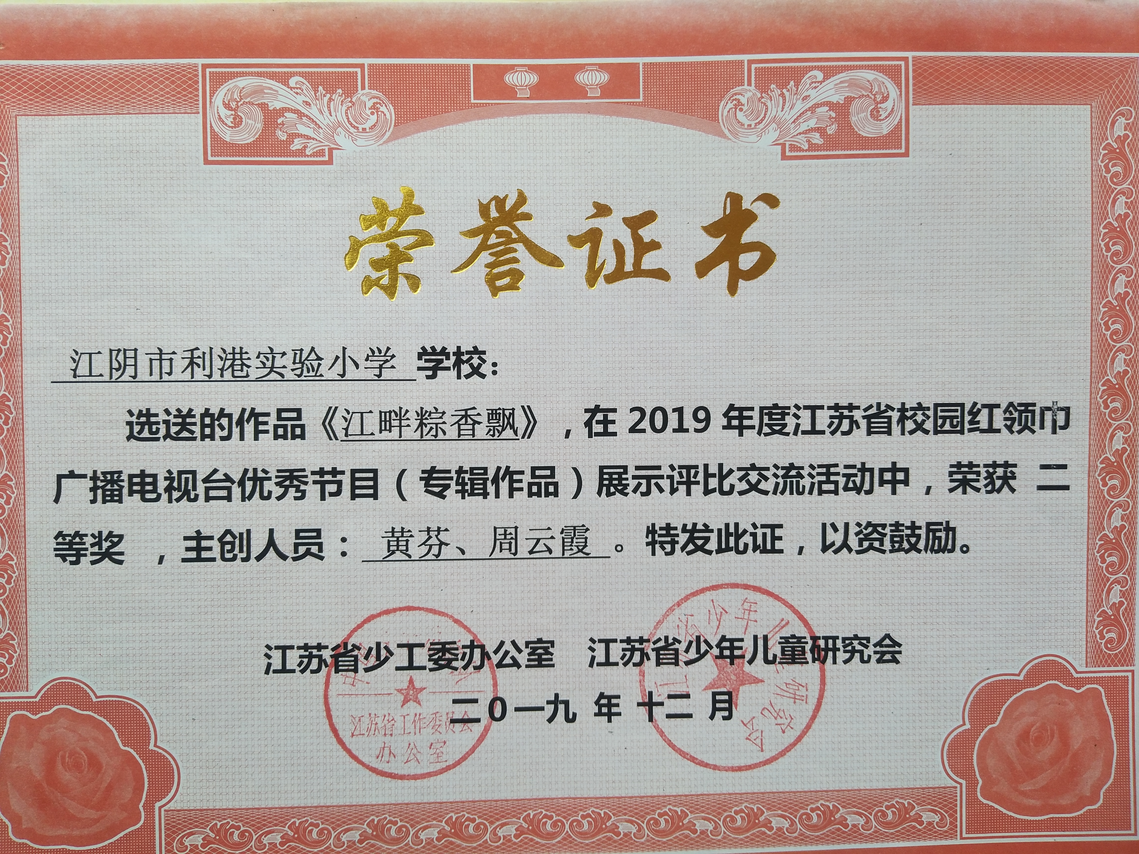 黄芬老师在2019年度江苏省校园红领巾电视台优秀节目评比活动中荣获二等奖