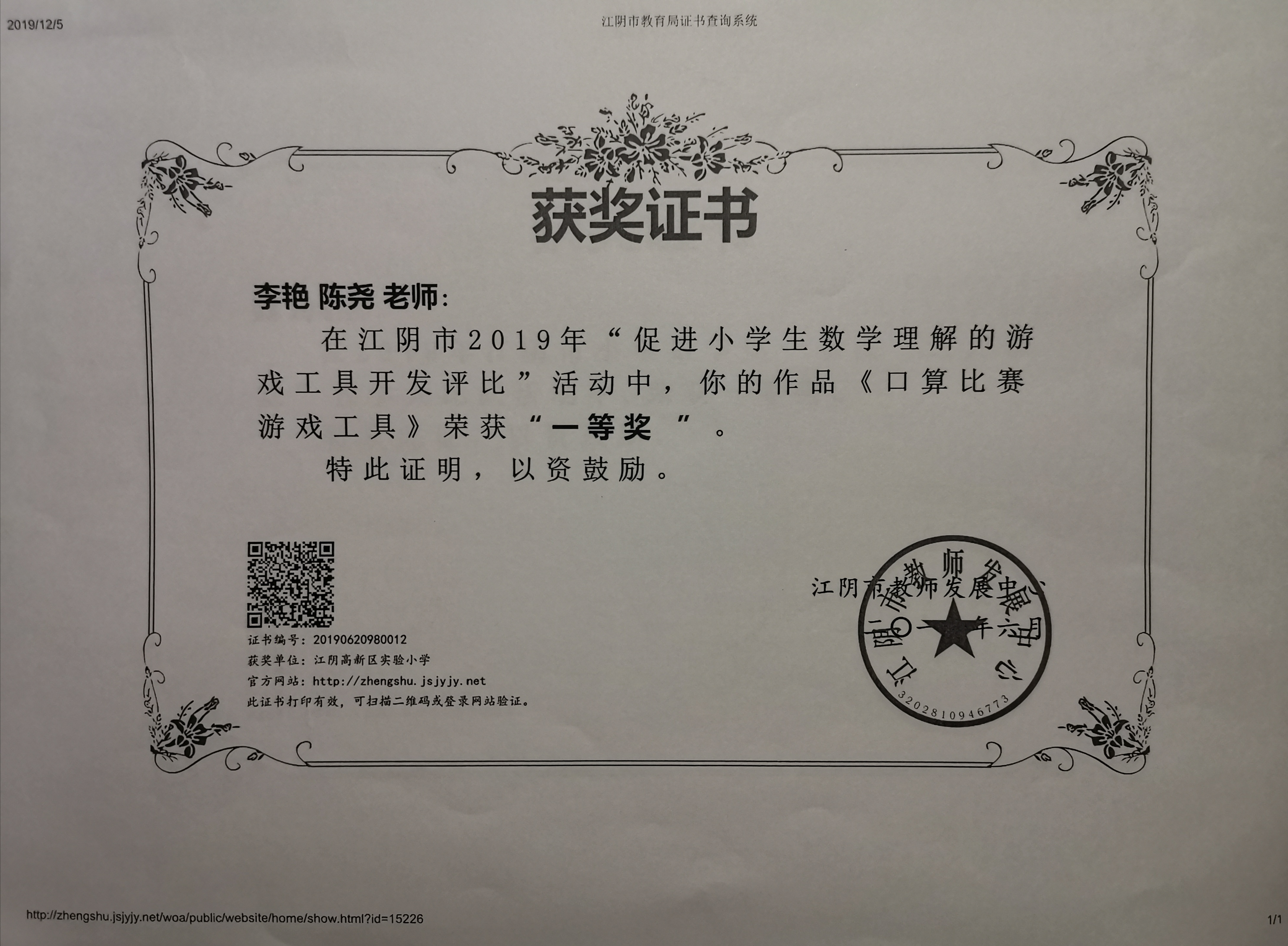 包静娟名师工作室成员李艳老师在游戏工具开发活动中获一等奖