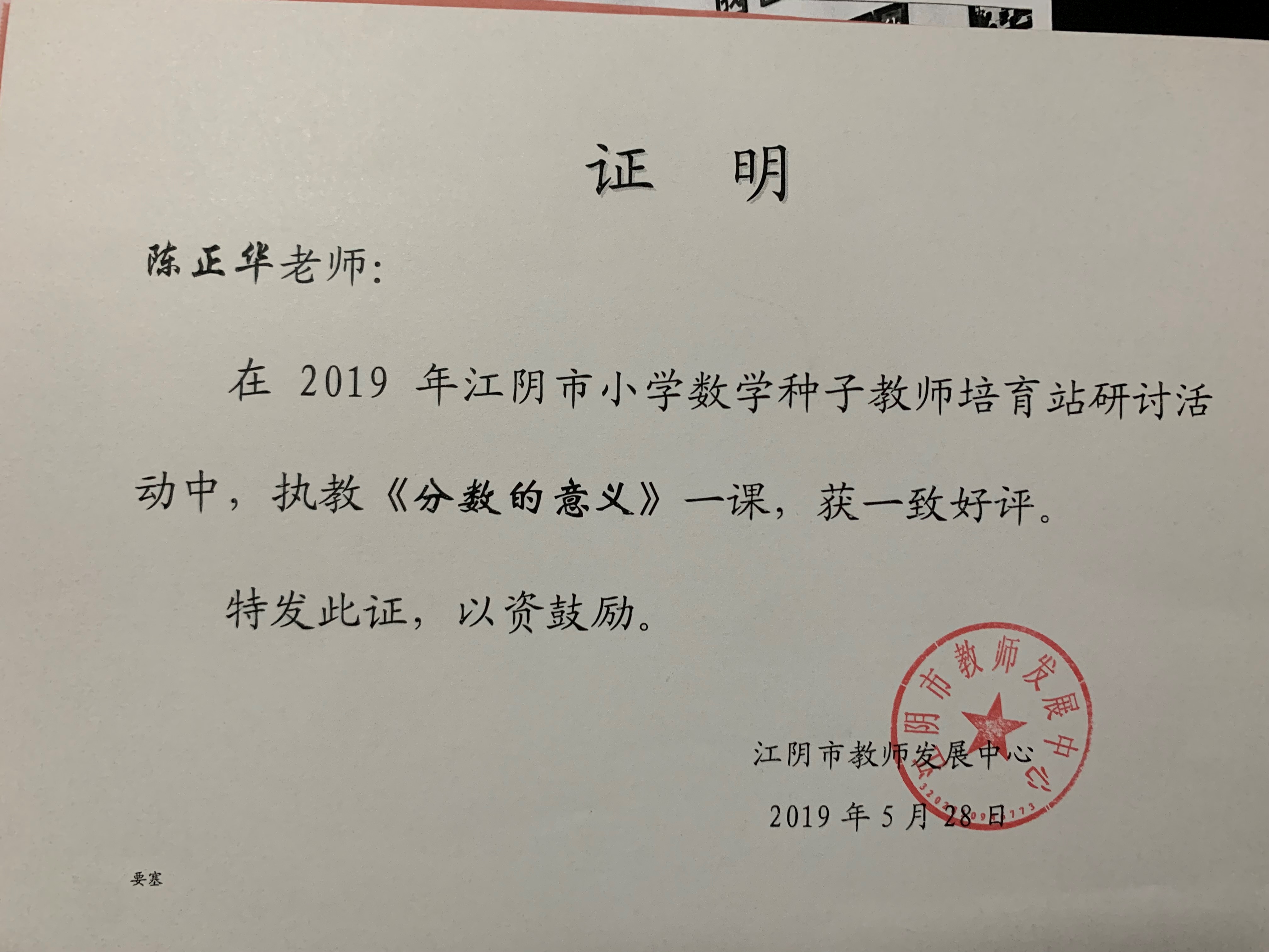 包静娟名师工作室成员陈正华老师在江阴市种子教师培育站研讨活动中,执教的《分数的意义》获一致好评.
