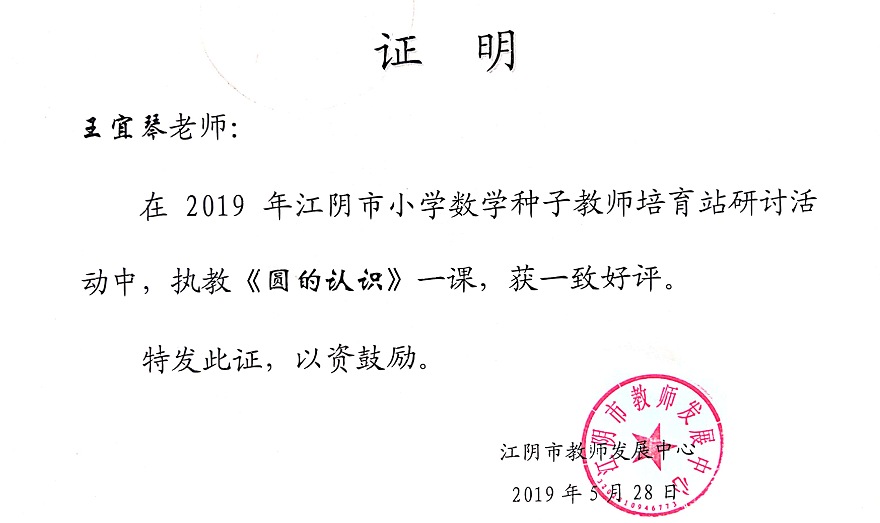 匡金龙名师工作室成员王宜琴老师执教的《圆的认识》在种子力培训站优课展示中获一致好评