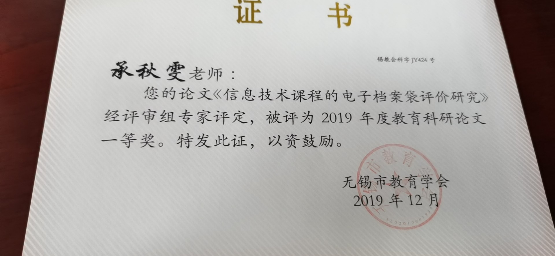 钱萍老师论文《课程游戏化背景下幼儿园户外活动环境的优化》获江苏省一等奖